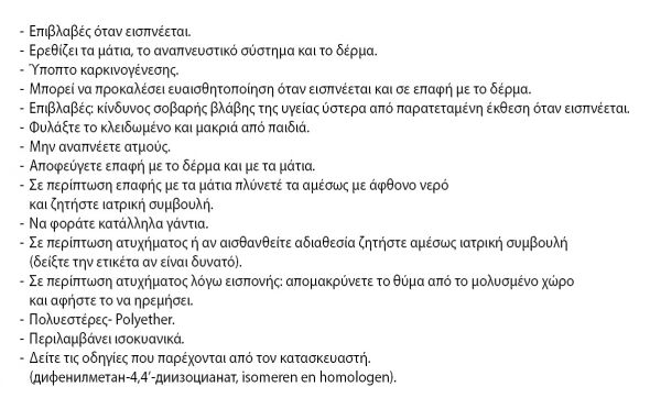 Κατάλληλη για την κόλληση κατασκευών ακόμα και κάτω από ακραίες συνθήκες (κρύο, ζέστη, κάτω από θαλασσινό νερό). Δεν είναι κατάλληλη για κόλληση πολυαιθυλενίου, πολυπροπυλαίνιου, P.T.F.E. και σιλικόνης.
