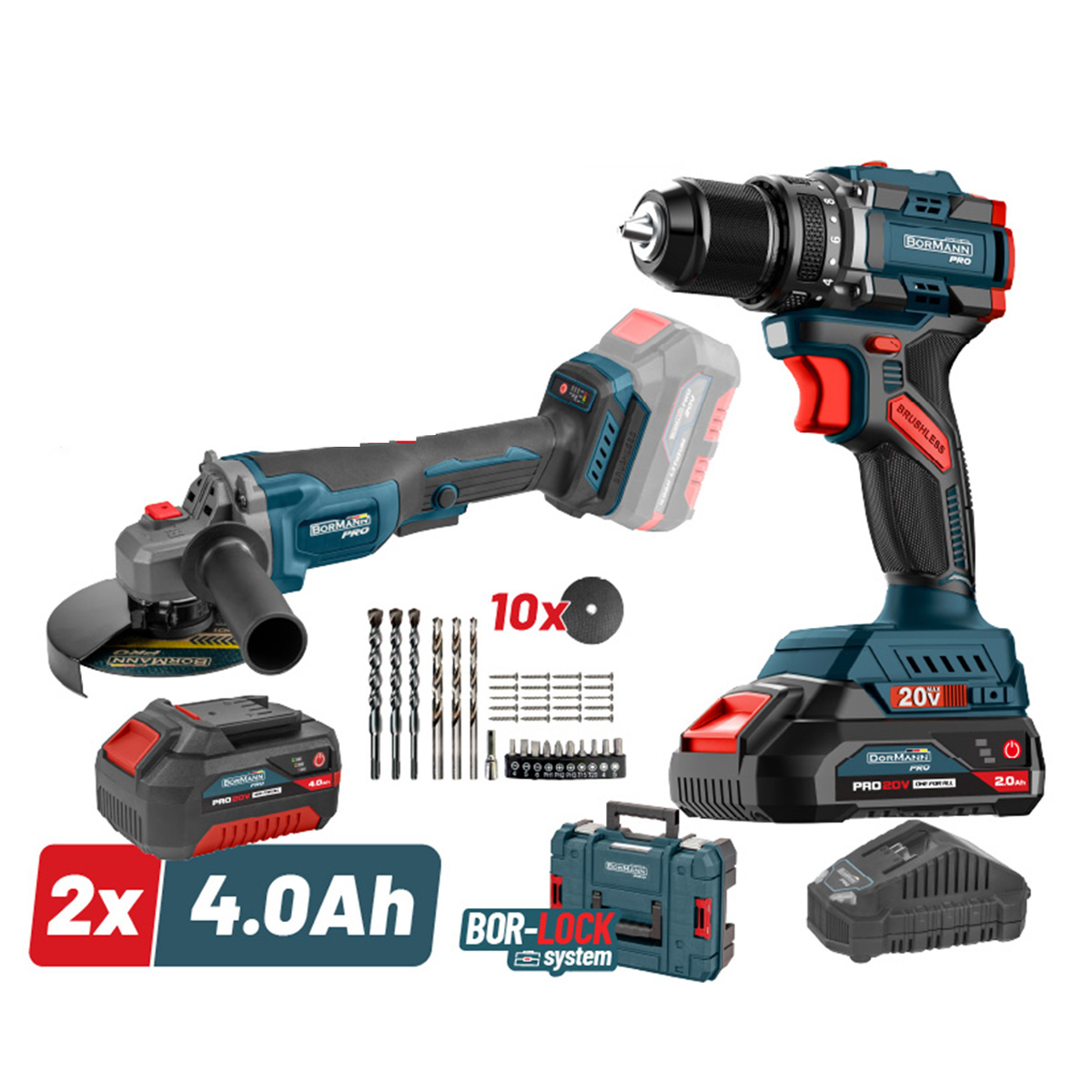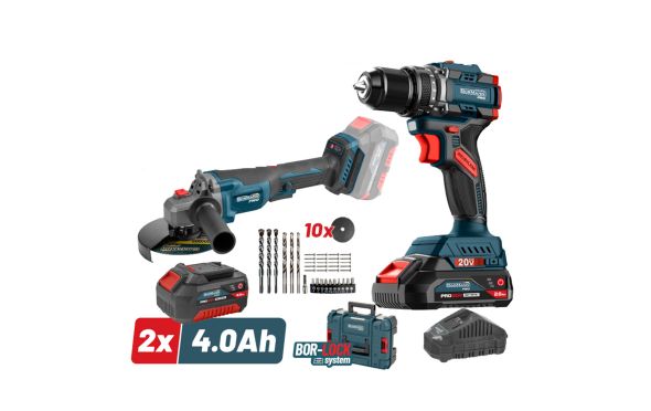 - Bormann - BBP5433X44T2CA Σετ Compact Κρουστικό Δραπανοκατσάβιδο & Γωνιακός Τροχός Μπαταρίας Brushless 20V Li-Ion σε Βαλίτσα μεταφοράς (2x4.0Ah).