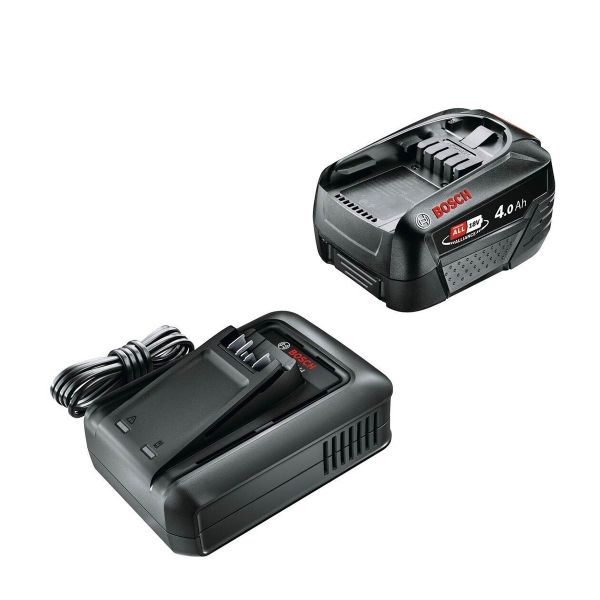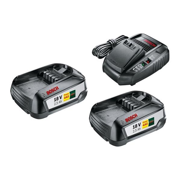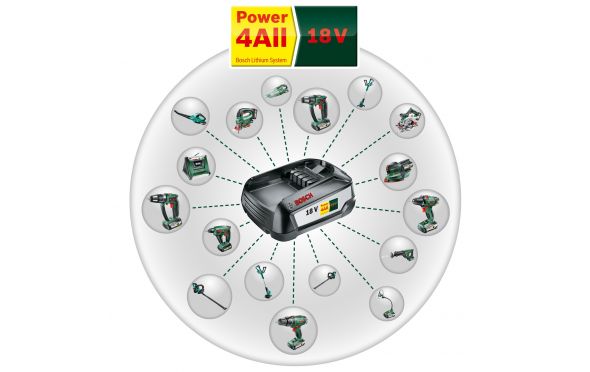 - Ισχυρή μπαταρία ιόντων λιθίου και φορτιστή ο οποίος μπορεί να χρησιμοποιηθεί για όλα τα εργαλεία του συστήματος Power4All 18V της Bosch.