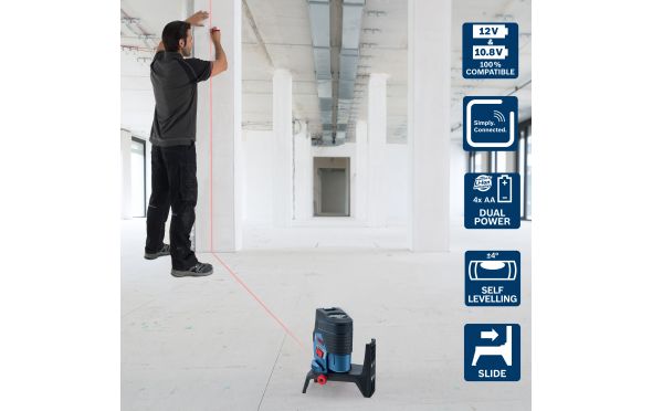 - Κατάλληλο για εφαρμογές όπως: Ανάρτηση οροφών, ευθυγράμμιση τοίχων ξηρής κατασκευής μέσω κάθετων ακτίνων λέιζερ, εγκαταστάσεις κλιματισμού και ηλεκτρονικές εγκαταστάσεις χάρη στην απλή μεταφορά των σημείων κατακορύφου, πλήρης μεταφορά ράστερ φωτισμού, χωροστάθμηση επιφανειών για την ολοκλήρωση εργασιών στον εσωτερικό χώρο, όπως την ευθυγράμμιση τελικών σημείων αναφοράς για την ακριβή ρύθμιση της θέσης.