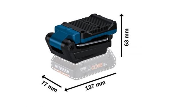 - Το φως εργασίας είναι συμβατό με όλες τις μπαταρίες και φορτιστές AMPShare Alliance 18 V συμπεριλαμβανομένων όλων των μπαταριών και φορτιστών του Bosch Professional 18V System.