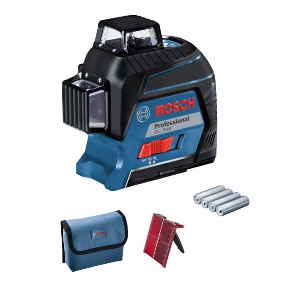 Bosch - GLL 3-80 C Γραμμικό Λέιζερ με Πίνακα Στόχου και Στήριγμα Τοίχου BM1 σε L-Boxx (1x2Ah) 12V