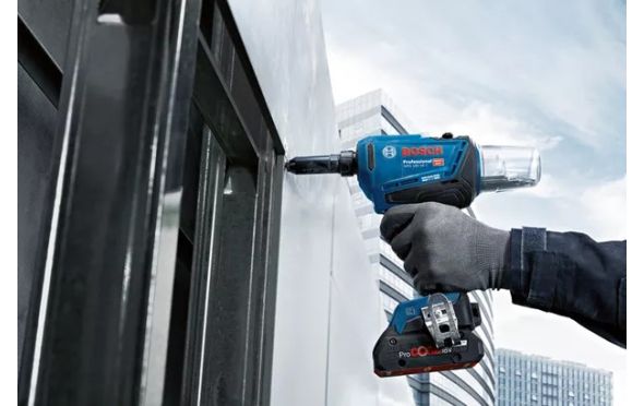 - Το GRG 18V-16 C Professional εγκαθιστά έναν μεγάλο αριθμό τυφλών πριτσινιών (διάμετρος 3,0–6,4 mm), με μια σταθερή δύναμη έλξης 16000 N.
