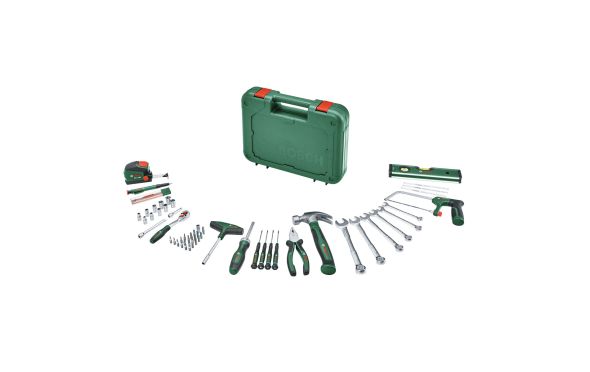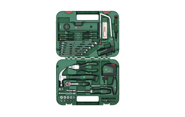 Το σετ εργαλείων «όλα-σε-ένα» για μια κορυφαία απόδοση σε πολλές ερασιτεχνικές εργασίες.Όταν η ακρίβεια, η απόδοση και η άνεση είναι θέμα, το σετ εργαλείων χειρός Advanced 64 τεμαχίων της Bosch είναι η απόλυτη συλλογή για έμπειρους λάτρεις των ερασιτεχνικών εργασιών. Αυτό το πλήρες σετ είναι σχεδιασμένο, για να αναλαμβάνει μια σειρά εργασιών – από επισκευές και συντήρηση έως την κατασκευή επίπλων και οικιακών μικροκατασκευών. Συσκευασμένο σε μια στιβαρή κασετίνα μεταφοράς, το σετ διαθέτει σιδεροπρίονο με πρόσθετες πριονόλαμες, πολλαπλά κατσαβίδια και κλειδιά, πένσες, μια καστάνια, καρυδάκια, μια και κατσαβιδόλαμες. Επιπλέον, περιλαμβάνονται μια εύχρηστη μετροταινία, αλφάδι και μαρκαδόρο για βαθιές τρύπες για ακριβή αποτελέσματα εργασίας....