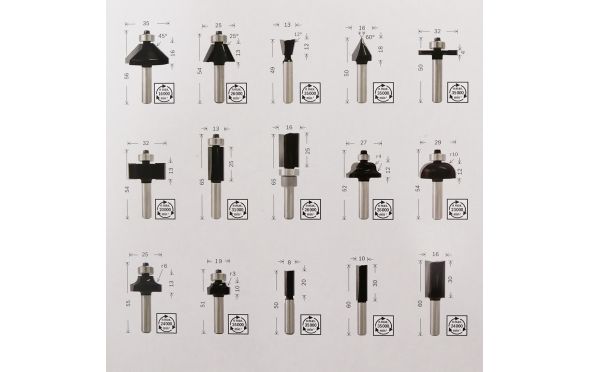 BOSCH - Σετ Φρέζες για Ρούτερ διάφορες 6mm - 15 Τεμαχίων.