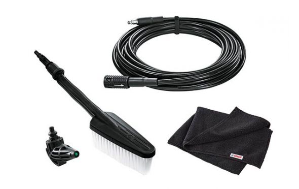 - Σετ καθαρισμού αυτοκινήτου: Ακροφύσιο 90o, βούρτσα πλυσίματος, εύκαμπτος σωλήνας επέκτασης 6m, πανί μικροινών.