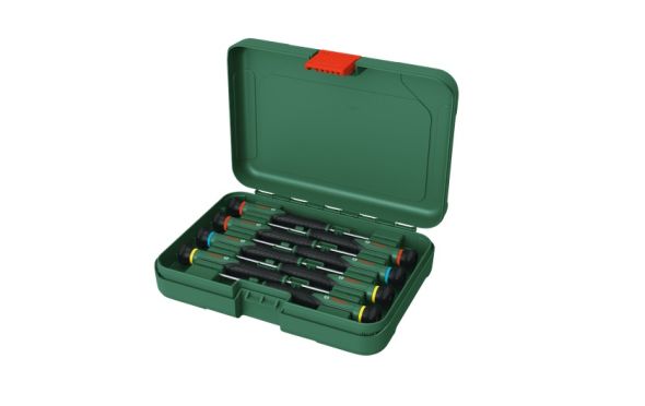 - Εύχρηστη κασετίνα για άνετη αποθήκευση των 8 κατσαβιδιών ακριβείας: SL1.5, SL2.5, SL3.0, PH00, PH0, TX5, TX6, TX8.