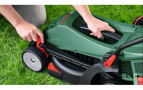 - Ρυθμιζόμενο ύψος κοπής 5 βαθμίδων - Η λαβή διαθέτει έναν ενσωματωμένο μοχλό 5 βαθμίδων για ρύθμιση του ύψους κοπής με ένα εύρος από 25-70 mm.