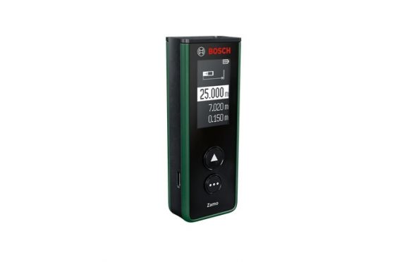 - Τοποθετημένο, ευθυγραμμισμένο και με το πάτημα ενός κουμπιού, το Zamo μετρά με ακρίβεια αποστάσεις έως 25 μέτρα.
