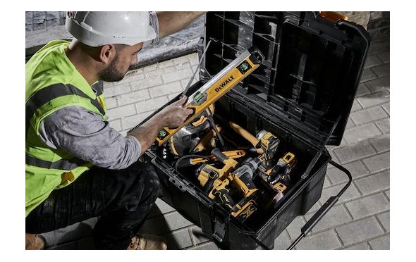 - Επιτρέπει το άνοιγμα του μισού καπακιού στο επάνω μέρος για γρήγορη πρόσβαση στα εργαλεία, χωρίς να αφαιρείτε στοιβαγμένες μονάδες TSTAK™.