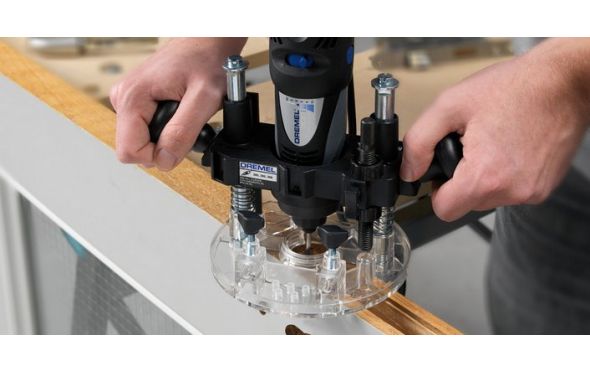 - Μετατρέπει το εργαλείο σας Dremel σε μια βυθιζόμενη φρέζα για το φρεζάρισμα κύκλων, για εργασίες επιγραφών και σκαλισμάτων, διακοσμητικές ακμές και για φρεζάρισμα παράλληλα σε μια ακμή.