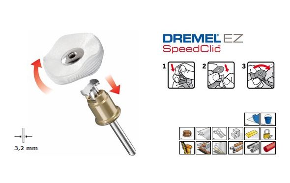 Αυτό ο δίσκος είναι ιδανικός για γυάλισμα μετάλλου και πλαστικού. Μπορεί επίσης να χρησιμοποιηθεί με το βιδωτό στέλεχος 402. Γρήγορα, εύκολα, χωρίς κλειδί.