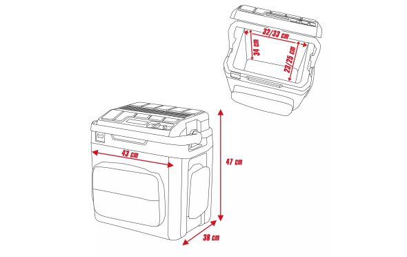 - Με χωρητικότητα 27 λίτρων, το ψυγείο μπαταρίας χωρά έως και 36 κουτάκια (0,33L), 20 μπουκάλια (0,5L) ή 6 μεγάλα μπουκάλια (1,5L).