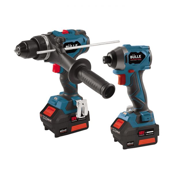 BULLE - Σετ Κρουστικό Δραπανοκατσάβιδο Λιθίου + Παλμικό Κατσαβίδι Λιθίου 18 Volt Brushless (2x4.0Ah)