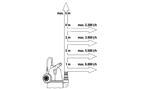 - Περιλαμβάνονται πολλά λειτουργικά χαρακτηριστικά. Iκανότητα αναρρόφησης έως 4 mm, εξασφαλίζοντας ότι σχεδόν όλο το ανεπιθύμητο νερό αποστραγγίζεται και ένα καλώδιο τροφοδοσίας 10m που επιτρέπει στην αντλία να λειτουργεί αποτελεσματικά μέχρι το μέγιστο βάθος των 6 μέτρων.