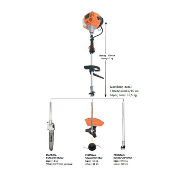 | Βάρος (χωρίς εξοπλισμό κοπής) 4.4 kg / 9.7 lbs |