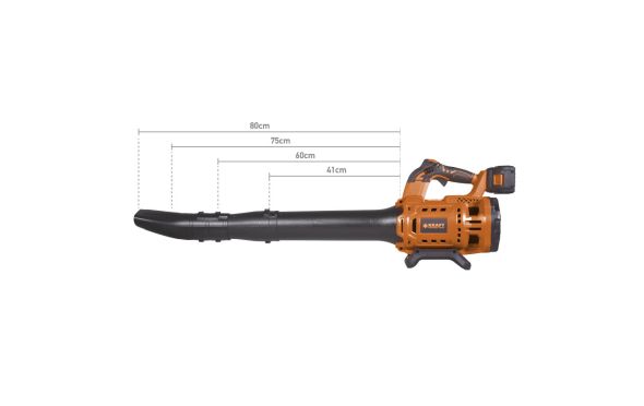 Με μοτερ Brushless (χωρίς κάρβουνα) για μεγαλύτερη αυτονομία σε σχέση με τους συμβατικούς φυσητήρες και αντοχή στο χρόνο.Με ηλεκτρονικό διακόπτη ρύθμισης στροφών και μοχλό διατήρησης στροφών για διευκόλυνση του χρήστη.Συνολικό μέγιστο μήκος φυστητήρα 114 cm με την μπαταρία.Ακροφύσιο πτυσσόμενο σε 2 θέσεις, με μηκός 75cm ή 80 cm αντίστοιχα.Μαλακή λαβή για άνετη χρήση.Στάθμη ηχητικής ισχύος LwA - 97dB(A).Εμφάνιση ποσοστού φόρτισης στη μπαταρία με 4 ενδεικτικές λυχνίες ( 25-50-75-100 %).Αυτονομία στην μέγιστη ισχύ 10 λεπτά και στο 50% της ισχύος 20 λεπτά.
