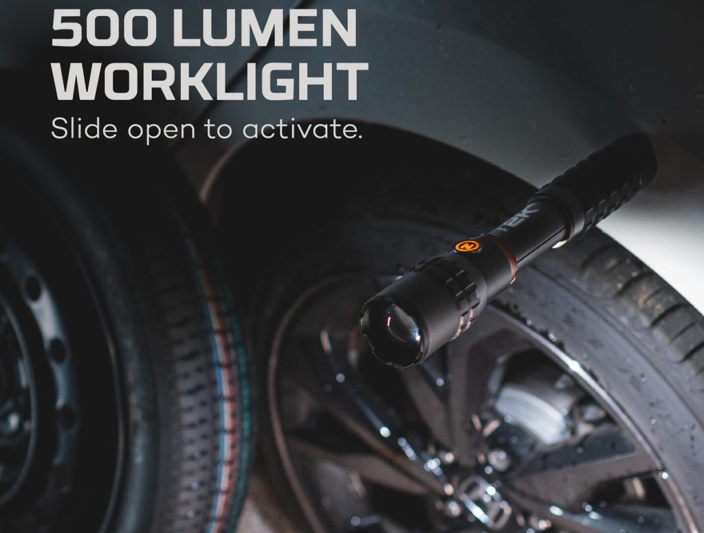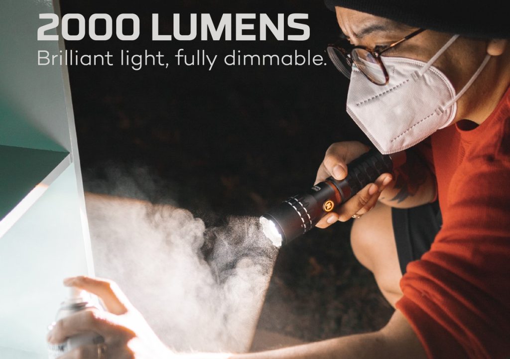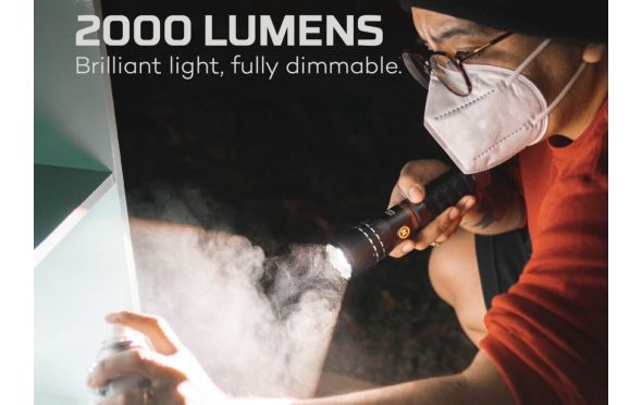 - Διαθέτει φακό 2.000 lumen με ζουμ 4x και C.O.B φως εργασίας 500 lumen. Και τα δύο φώτα διαθέτουν επιλογή ρύθμισης φωτεινότητας με προγραμματιζόμενη μνήμη.