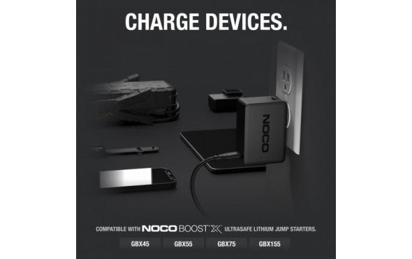 - Συμβατός με τα μοντέλα εκκινητών λιθίου NOCO Boost X UltraSafe GBX45, GBX55, GBX75, και GBX155.