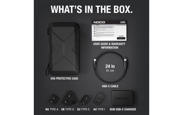 - Ο φορτιστής U65 65-Watt USB-C είναι σχεδιασμένος για την επαναφόρτιση των εκκινητών λιθίου NOCO Boost X.