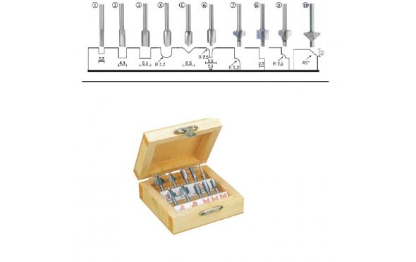 - Σετ φρέζες καρβιδίου-βολφραμίου 10 τεμαχίων.