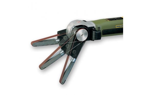 Η κεφαλή περιστρέφεται κατά 60 μοίρες. Πλήρες με δύο ιμάντες των 80 και 2 των 180 grit.
