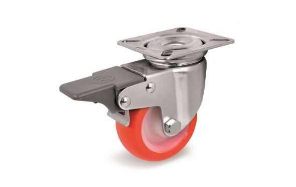 Κατάλληλο για χρήση σε διαφορετικούς τύπους καροτσιών, ιδίως στο χώρο της εστίασης.Καλή ικανότητα μεταφοράς φορτίου σε σχέση με τροχούς μικρής διαμέτρου.Πέλμα:θερμοπλαστική πολυουρεθάνη.Κέντρο: πολυαμίδιο.Βάση: γαλβανιζέ.