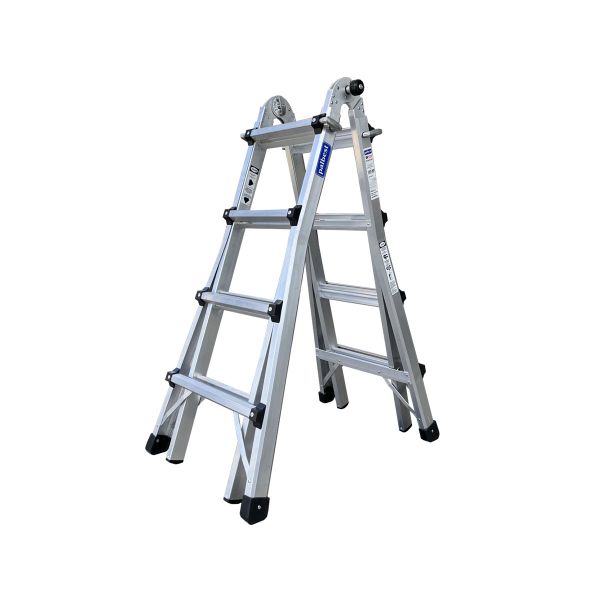 Σκάλα αλουμινίου με 2 αυτόματες ασφάλειες.Δυνατότητα σκάλας να διαμορφώνεται σε 5 διαφορετικές θέσεις κλειδώματος.Χρήση σε ανισόπεδο.Εύκολη στην μεταφορά και αποθήκευση λόγο μεγέθους.Η σκάλα παρέχει όλες τις ευρωπαϊκές προδιάγραφες ΕΝ131 Μέγιστη αντοχή 150kg.
