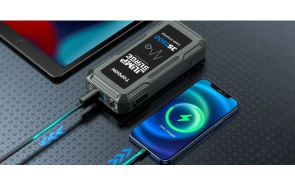 - Η μπαταρία 10.000mAh/37Wh στο TOPDON JS1500 εξυπηρετεί πολλαπλούς σκοπούς.