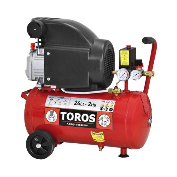 - Ελαιολίπαντος μονοκύλινδρος αεροσυμπιεστής μονομπλόκ 24lt Toros με ισχύ 2,5 ΗΡ