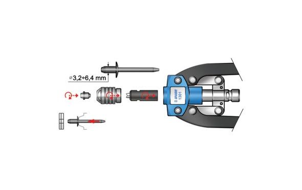 - 4 ακροφύσια για πριτσίνια 3,2mm - 6,4mm (1/8" - 1/4").