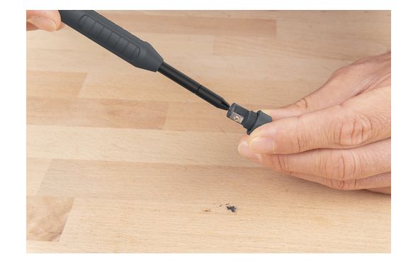 Το μηχανικό μολύβι βαθιάς οπής είναι το ιδανικό εργαλείο για μαρκαρίσματα σε σημεία με δύσκολη πρόσβαση.Με τη λεπτή γκρι μύτη γενικής χρήσης Ø 2,8 mm και το λεπτό στέλεχος μύτης με διάμετρο μόλις Ø 5,7 mm, σας επιτρέπει το άνετο σημάδεμα σε βάθος έως και 4 cm, ιδανικό για χρήση σε οπές διάτρησης.Ενσωματωμένη ξύστρα στο κουμπί πίεσης για το ξύσιμο της μύτης.Με μία γκρι μύτη γενικής χρήσης.