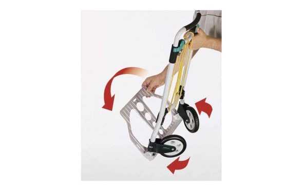 Οι ρόδες και η πλάκα μεταφοράς ανοίγουν με το τράβηγμα μίας μόνο λαβής χάρη στον μηχανισμό αναδίπλωσης