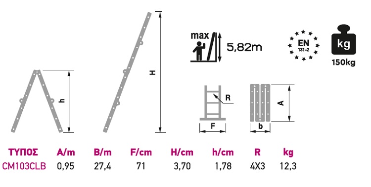 • Η σκάλα παρέχει όλες τις ευρωπαϊκές προδιαγραφές EN131.