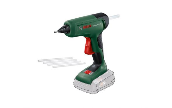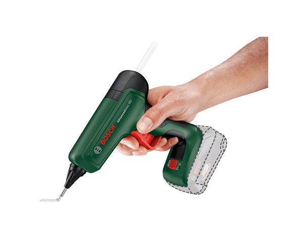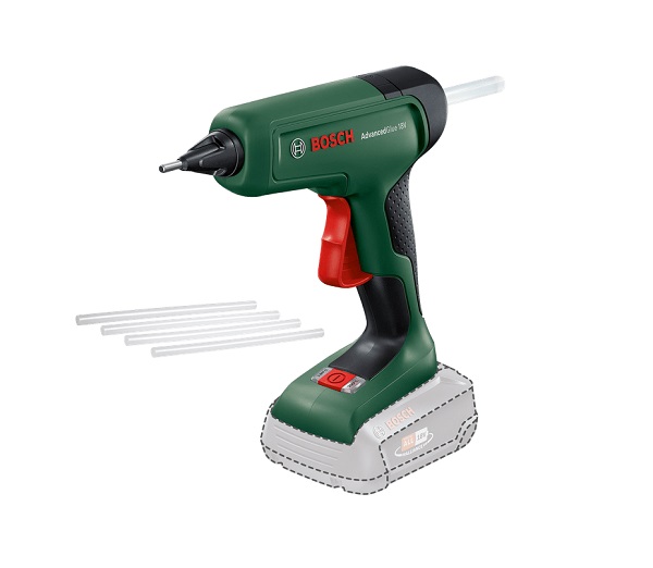 - Το AdvancedGlue 18V είναι ένα ισχυρό πιστόλι θερμοκόλλησης μπαταρίας που φθάνει την ισχυρή απόδοση ενός εργαλείου ρεύματος και είναι συμβατό με το σύστημα μπαταρίας 18 V της Bosch.