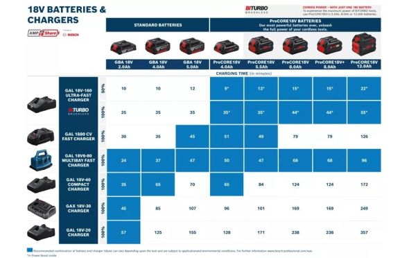 - Αυτός ο υπερταχυφορτιστής είναι συμβατός με το Bosch Professional 18V System και με τη συμμαχία μπαταριών AMPShare.