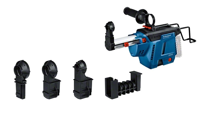 Μπορεί να εγκατασταθεί εκ των υστέρων για χρήση με πολλά δημοφιλή περιστροφικά πιστολέτα ρεύματος και μπαταρίας βαρέως τύπου Bosch Professional και περιλαμβάνει τέσσερα εναλλάξιμα μάτια σκόνης για σταθερά τσοκ ή ταχυτσόκ και για τρυπάνια με διάμετρο έως και 26 mm, καθώς και μια επέκταση για εξαρτήματα με μήκος έως και 265 mm.