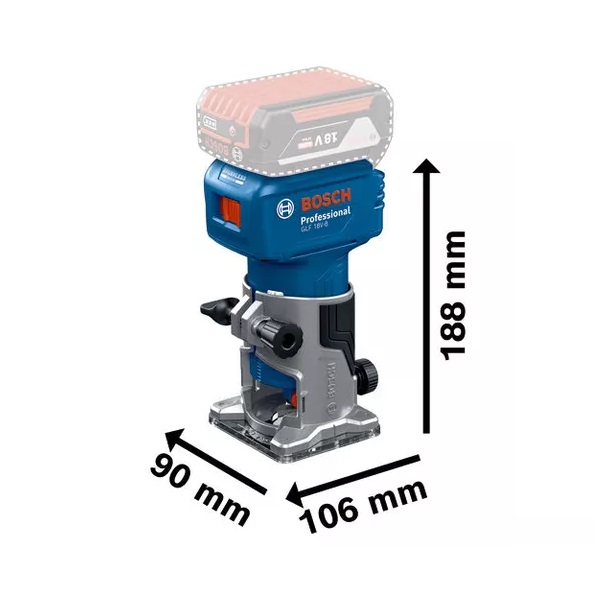 • Η κάθετη φρέζα μπαταρίας GLF 18V-8 Professional είναι το βασικό εργαλείο για κούρεμα ακμών, αυλάκωση, κούρεμα προτύπων και δημιουργία προφίλ.