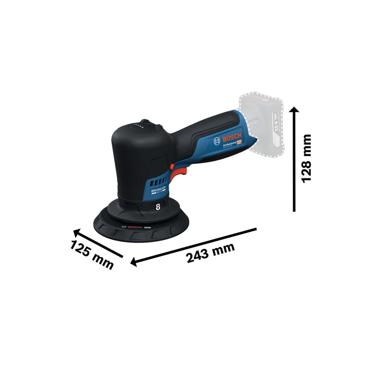 Bosch - GPX 12V-125 Στιλβωτής Μπαταρίας 12V Li-Ion Brushless - Χωρίς Μπαταρία & Φορτιστή (Solo)