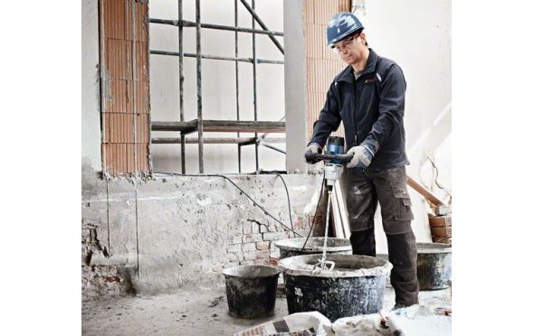 Το συμπαγές για την ανάμειξη διαφόρων υλικών έως 50 kg Αναδευτήρας 1 ταχύτητας για ανάμειξη λεπτόρρευστων και παχύρρευστων υλικών Ισχυρός κινητήρας 1.200 W Εργονομική λαβή πλαισίου Για αναδευτήρες έως 140 mm διάμετρο Ηλεκτρονικός διακόπτης για συνεχή ηλεκτρονική αλλαγή του αριθμού στροφών Για σκληρή συνεχή εργασία