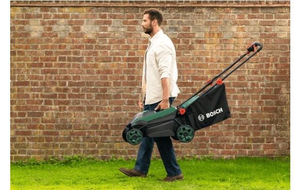 - Η αναδιπλούμενη λαβή και η δυνατότητα κάθετης αποθήκευσης καθιστούν στη συνέχεια εύκολη την αποθήκευση του χλοοκοπτικού με εξοικονόμηση χώρου.