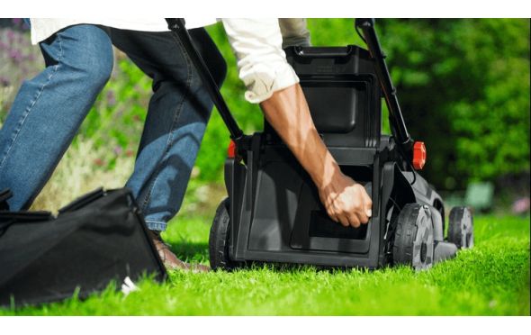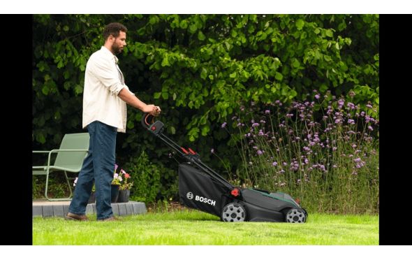 - Η αναδιπλούμενη λαβή με τηλεσκοπική ρύθμιση του ύψους εξασφαλίζει άνετη στάση κουρέματος και η δυνατότητα κάθετης αποθήκευσης καθιστά στη συνέχεια εύκολη την αποθήκευση του χλοοκοπτικού με εξοικονόμηση χώρου.