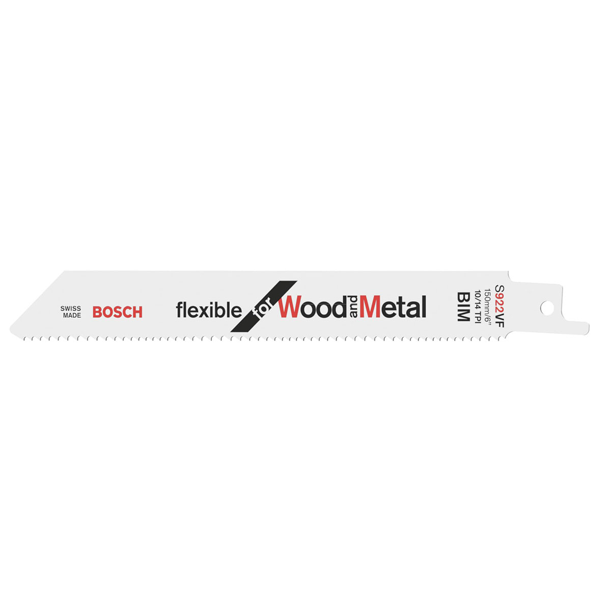 Η σπαθόλαμα S 922 VF Flexible for Wood and Metal πραγματοποιεί εύκολες κοπές σε ξύλο και μέταλλο. Η γεωμετρία δοντιών vario (1,8/2,6 mm) προσφέρει δυνατότητα ομαλής και χωρίς κραδασμούς κοπής. Επιπλέον, η διμεταλλική λάμα (BIM) είναι βελτιστοποιημένη για την κοπή μαλακών καρφιών, μαλακών χαλύβδινων υλικών και μη σιδηρούχων μεταλλικών στοιχείων ενσωματωμένων σε ξύλο. Χάρη στο τυπικό της μήκος (150 mm), η συγκεκριμένη λάμα διαθέτει ικανότητα κοπής έως και 100 mm. Διαθέτει στέλεχός γενικής χρήσης 1/2 ίντσας Ξύλο με καρφιά/μέταλλο (