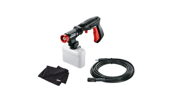 Το σετ καθαρισμού Expert 360° καθιστά δυνατό τον γρήγορο καθαρισμό της ρύπανσης σε εξωτερικούς χώρους. Με το σετ καθαρισμού 360° της Bosch, δεν ήταν ποτέ πιο εύκολος ο καθαρισμός σε εξωτερικούς χώρους και η απαλλαγή από τη ρύπανση σε δύσχρηστα σημεία. Αυτό το πολύπλευρο εργαλείο με εξοικονόμηση χρόνου διατίθεται με πιστόλι ψεκασμού 360°, το οποίο με τον χειρισμό ενός χεριού και το περιστρεφόμενο ακροφύσιο μπορεί να χρησιμοποιηθεί υπό γωνία για ξεκούραστη εργασία με εκτόξευση δέσμης ή για απαλό καθαρισμό επίπλων εξωτερικού χώρου ή δυσπρόσιτων σημείων, όπως ψηλά παράθυρα ή το κάτω μέρος των αυτοκινήτων. Συνδέστε έναν εύκαμπτο σωλήνα επέκτασης 6 μέτρων για εύκολη εφαρμογή σε απόσταση, ενώ εξακολουθεί να συνδέεται με πρίζες ρεύματος και...