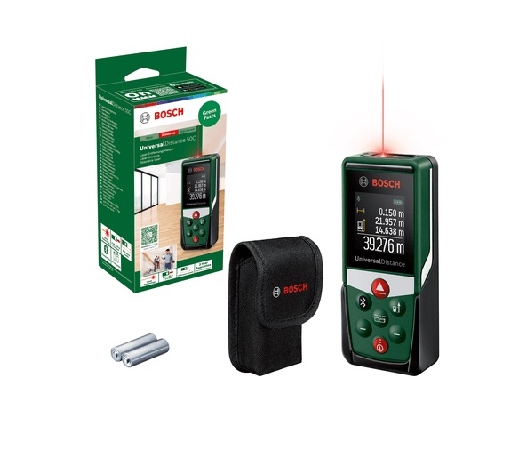 - Ο προγραμματισμός της ανακαίνισης στα χέρια σας – Το UniversalDistance 50C C δε μετρά μόνο αποστάσεις έως και 50 μέτρα με ακρίβεια λέιζερ αλλά επίσης παρέχει τις διαστάσεις επίπλων με μια ματιά.