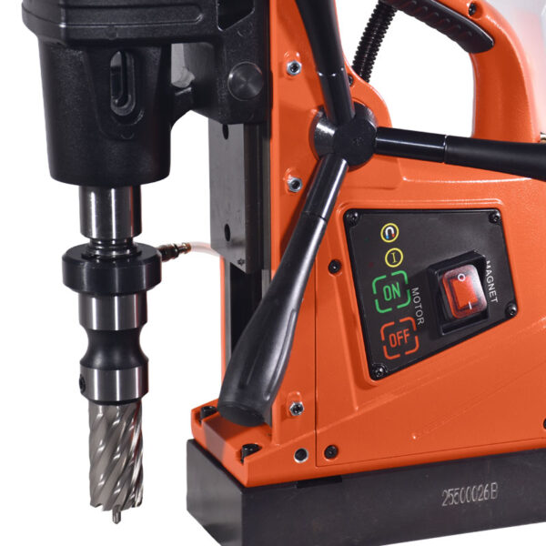 - Μαγνητική βάση υψηλής προσρόφησης με μαγνητική έλξη 15000N ημιτονοειδούς κύματος, με αυξημένη δύναμη συγκράτησης και διάρκεια ζωής, εξασφαλίζει απόλυτη σταθερότητα και αυξημένη ασφάλεια κατά τη διάτρηση και τη συνεχή λειτουργία.