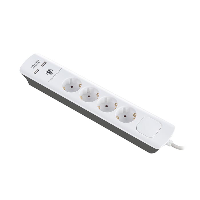 Πολύπριζο με προστασία 4 θέσεων & 2xUSB Auto-ID 1.5m.Προστασία από υπέρταση.Διακόπτης on/off φωτιζόμενος.Μηχανικό κλείδωμα πρίζας.4 x πρίζες σούκο.