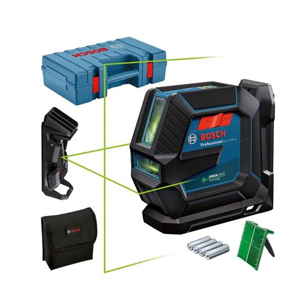 Αυτορυθμιζόμενο Λεϊζερ Σταυρού Πράσινης Γραμμής Διατηρεί πλήρης φωτεινότητα για συνεχή προβολή Εκκρεμές που κλειδώνει για την αποφυγή εσωτερικής βλάβης του λέιζερ Συμπεριλαμβάνεται : Μπαταρία 12V 2.0Ah Φορτιστής Βάση στήριξης τοίχου Επαγγελματική θήκη μεταφοράς