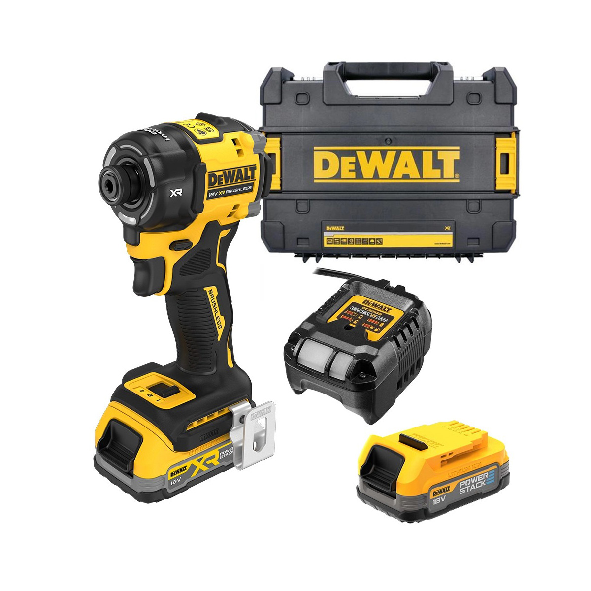 - Η κομπακτ μπαταρία 18V DEWALT POWERSTACK™ χρησιμοποιεί επαναστατική τεχνολογία στοιβαζόμενων κυψελών μπαταρίας, για να κάνει αυτήν την μπαταρία την πιο ισχυρή (έναντι της μπαταρίας DCB183, όχι σε χρήση) και πιο ελαφριά (έναντι των μπαταριών DEWALT 18V XR 2.0Ah ή χαμηλότερης ισχύος) μπαταρία που διαθέτουμε.
