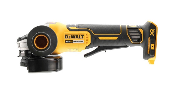Γωνιακός τροχός 18V XR Li-Ion Brushless 125mm. Το ηλεκτρονικό φρένο σταματά γρήγορα τον τροχό όταν απελευθερωθεί η σκανδάλη. Ηλεκτρονικός συμπλέκτης μειώνει την αντίδραση “κλοτσήματος” σε περίπτωση κολλήματος. Τα καλύμματα αεραγωγών περιορίζουν την απορρόφηση σκόνης μέσω του κινητήρα. Η λαστιχένια επικάλυψη παρέχει βελτιωμένη πρόσφυση και άνεση. Διακόπτη στην Σκανδάλη.